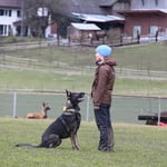 Roger Diethelm mit Gin von der Gletscherhöhle; Sprengstoffspürhund im 4. Rang